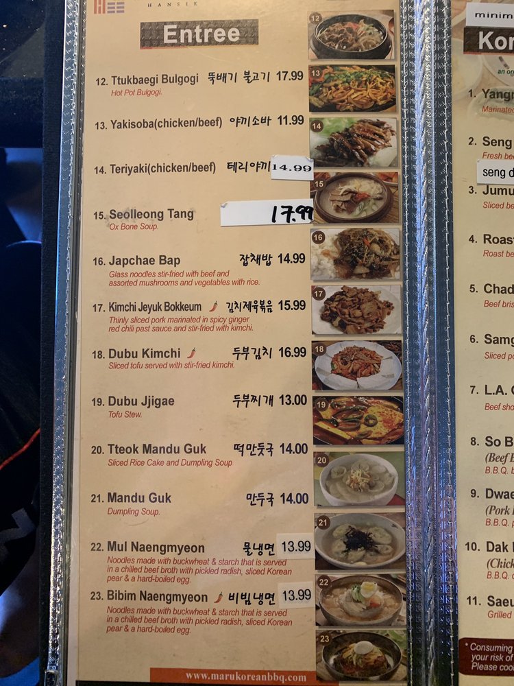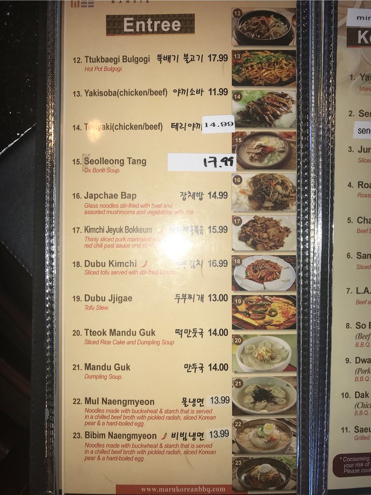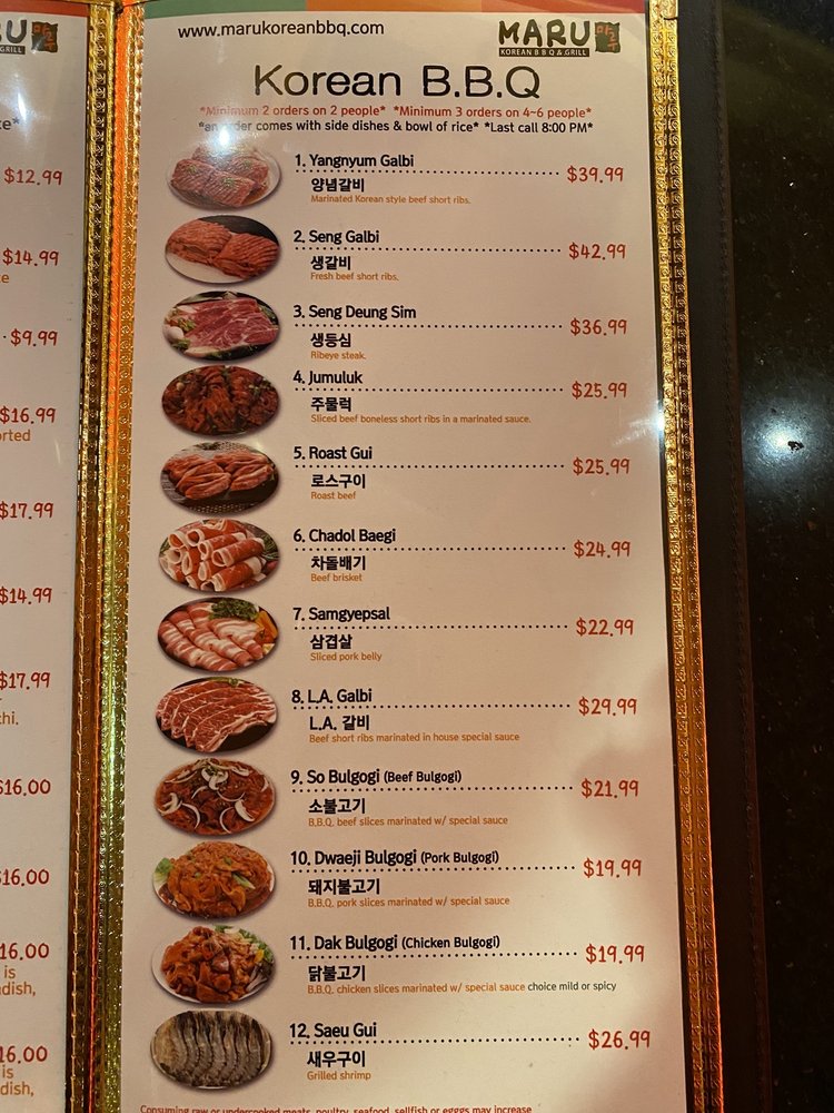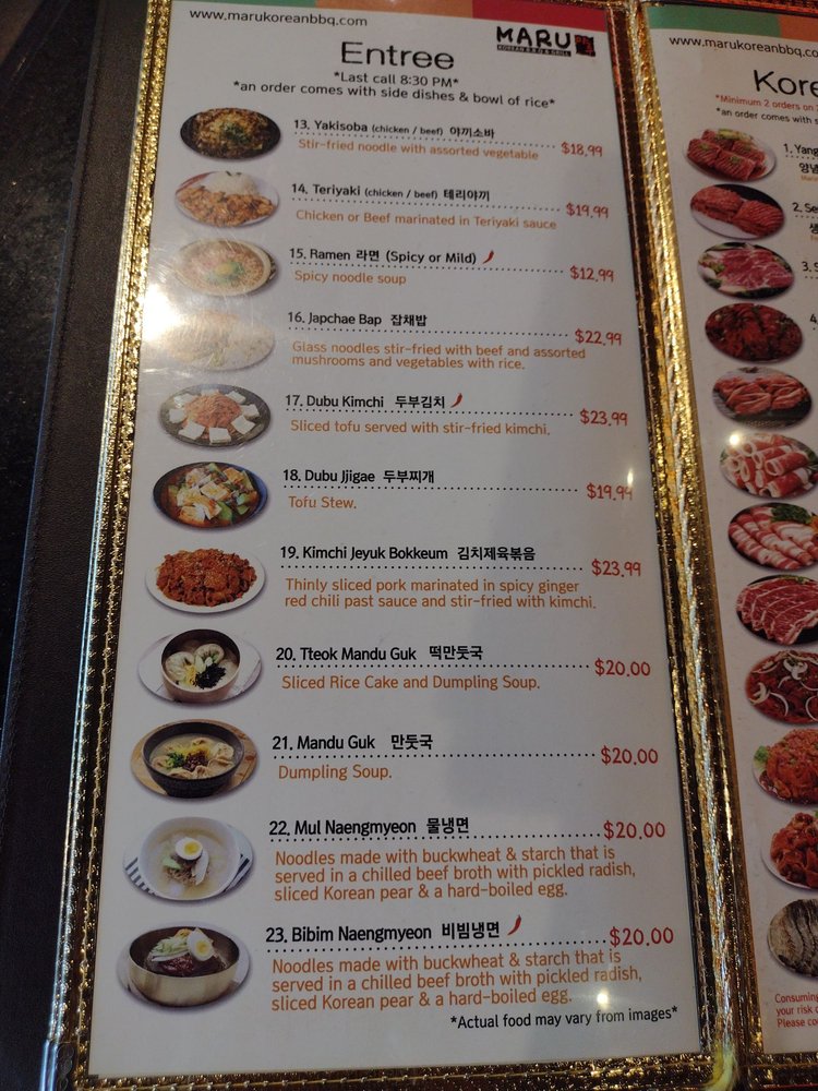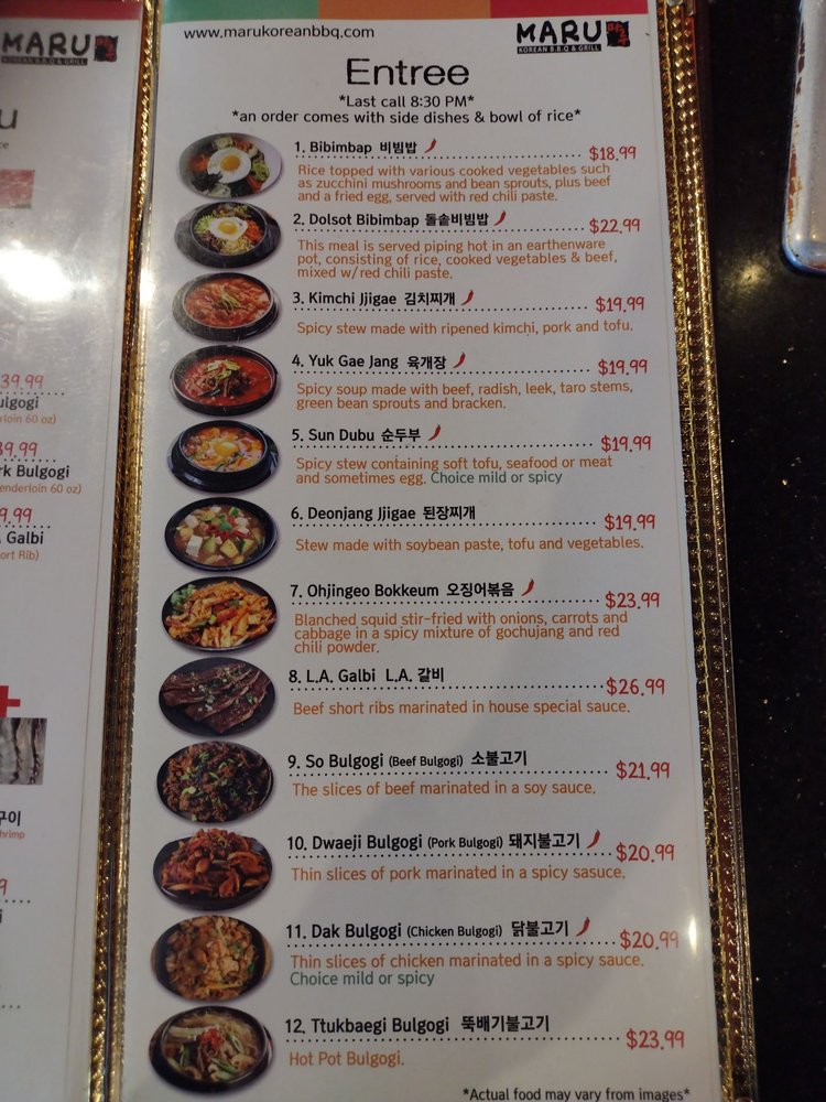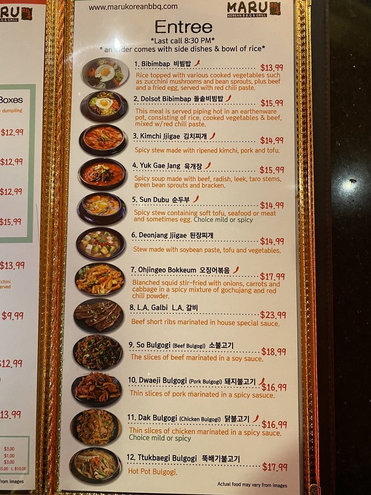 Maru's menu is a culinary journey through Korea. Start with enticing entrees like Dubu Kimchi, offering a flavorful embrace of sliced tofu with stir-fried kimchi at $25.99, or savor the heartwarming Deonjang Jjigae, a hearty stew enveloping rich soybean paste and fresh vegetables for just $22.99.